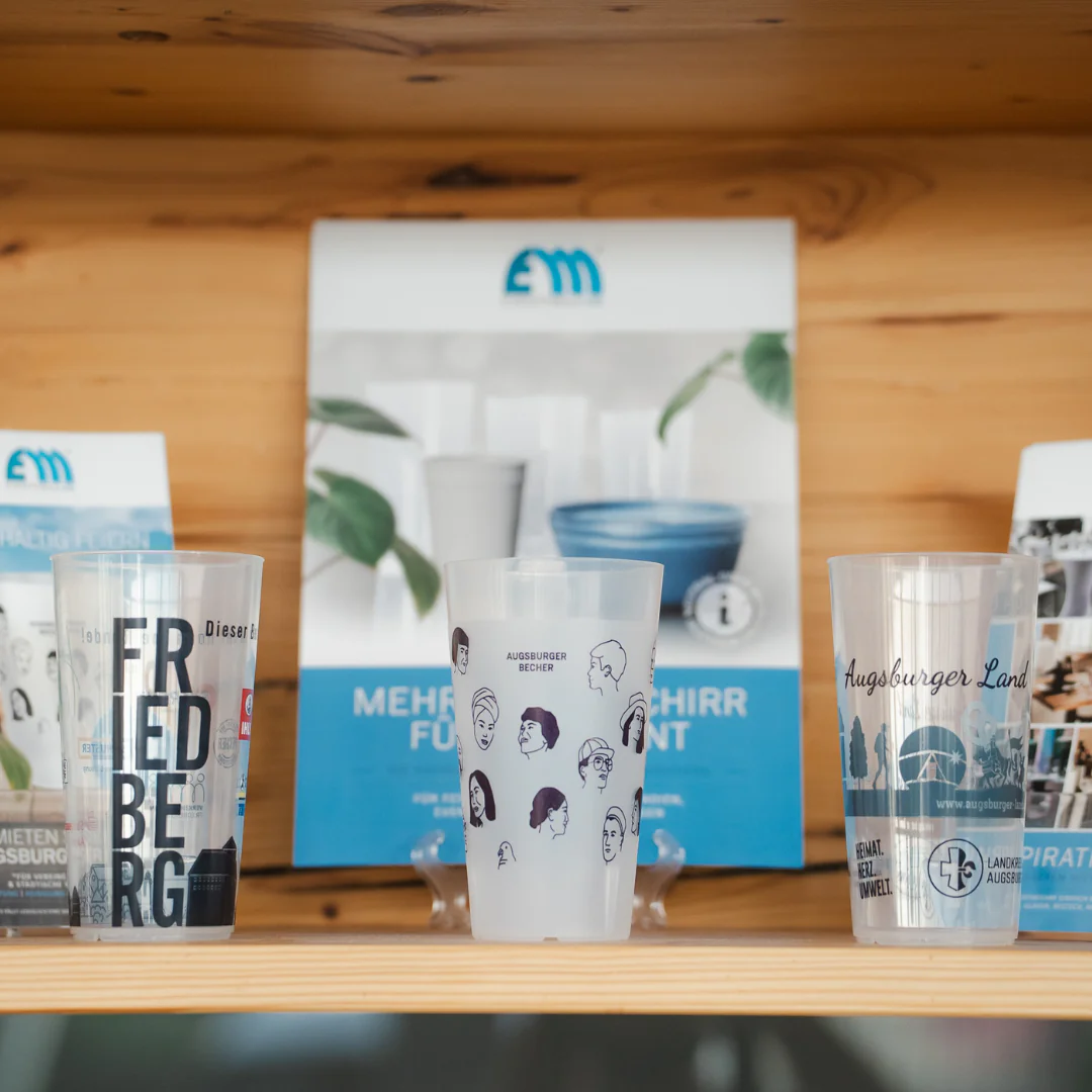 Und ein schöner Bonus: Die Becher sind nicht einfach neutral, sondern bewusst lokal gestaltet. Mit Motiven aus Augsburg, Friedberg und dem Augsburger Land bekommen sie einen regionalen Bezug und machen dein Event direkt ein Stück persönlicher.